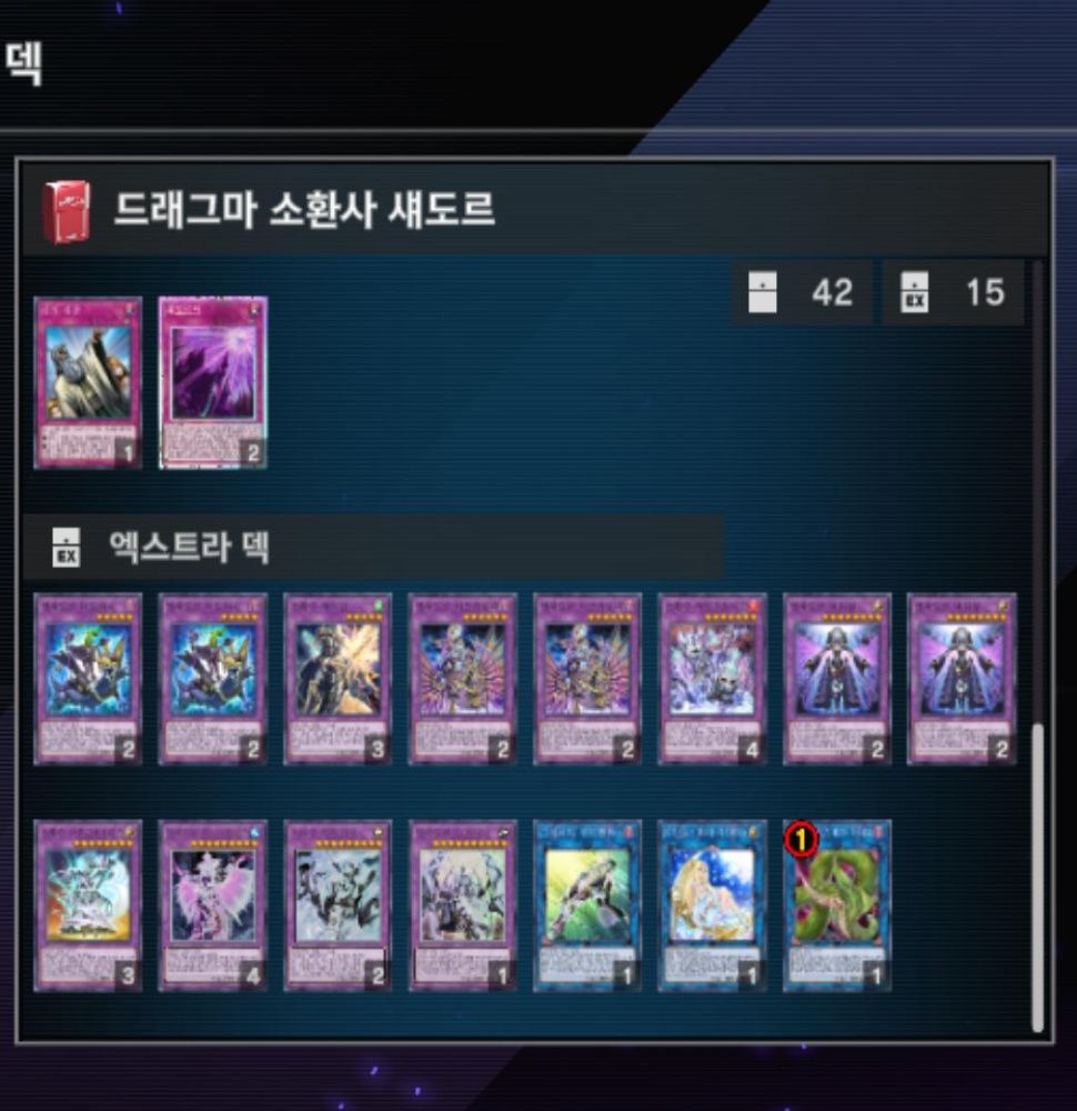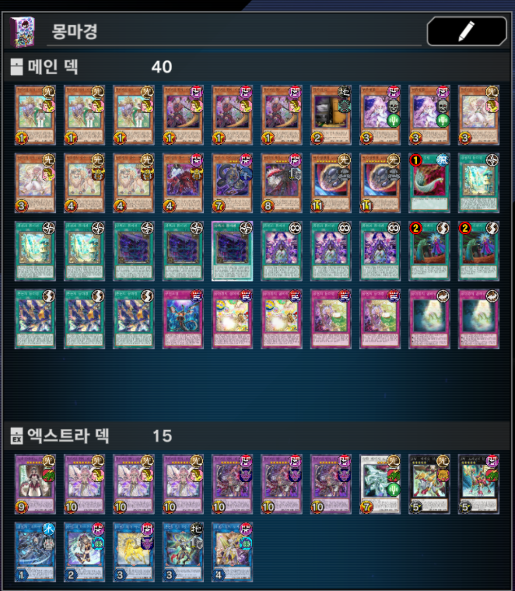 5-1. 메인, 엑스트라, 사이드를 모두 확인할 수 있어야하는 사진과 [카드명 X 갯수]를 적어서 제출